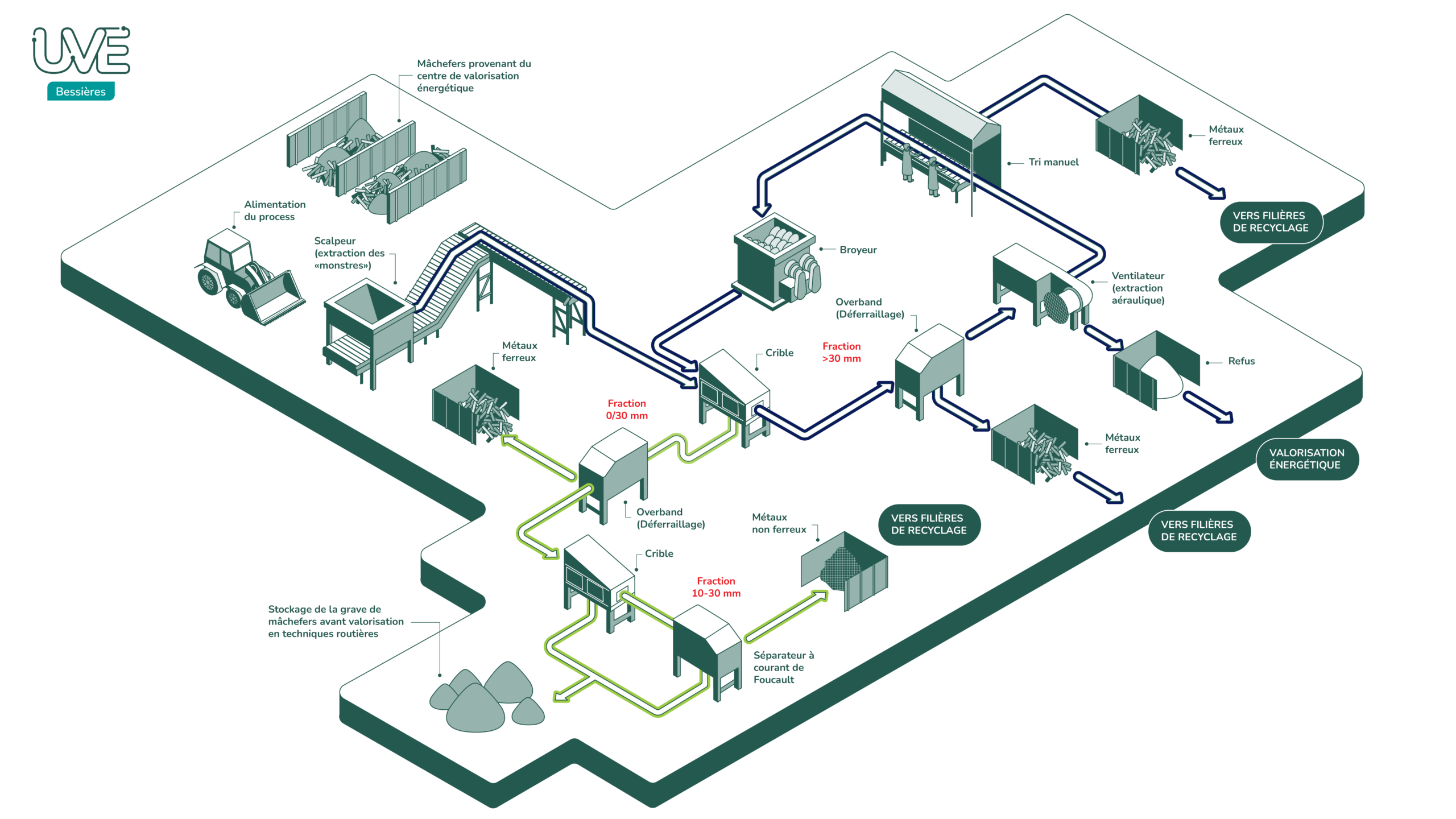 100 % des mâchefers produits et traités à l’UVE sont valorisables.